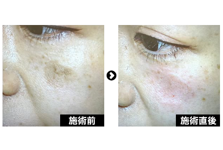 シミ・肝斑・ホクロ・イボ・血管腫・赤ら顔は1~2回の治療で除去でき、メスや麻酔は必要ありません。