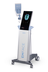 エムフェイスはハイフェス(高密度顔面電気刺激)とシンクロ波(高周波)を用いて、顔の皮膚から筋肉までの全層を治療する医療機器です。