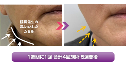 ただし、本治療に関しては厚労省によって認可を受けたものではないため、保険適応外の自費治療となります。お顔の額のシワ、目元・頬部(ほうれい線・マリオネット線)・顎下のたるみ部分が治療の対象になります。