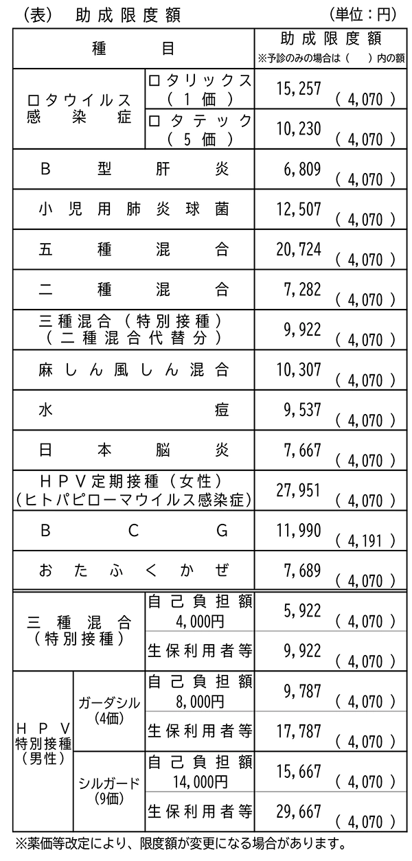 | 2~18歳までの方(1回) 住所確認のため健康保険証あるいは、運転免許証を必ずご持参ください。 |